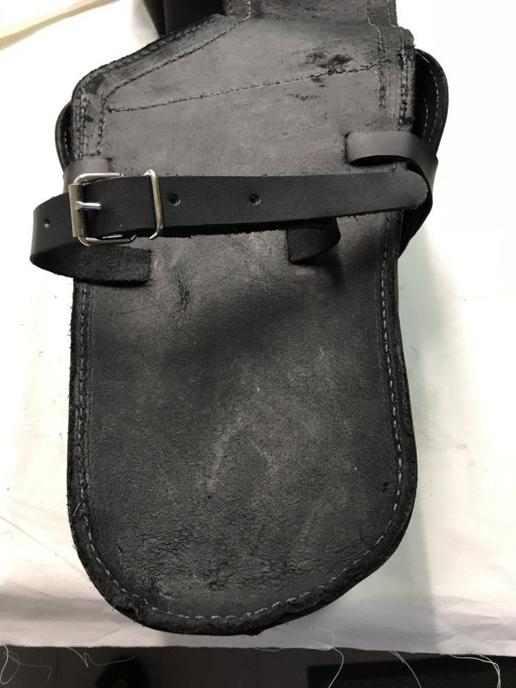 Dimensions : hauteur de la sacoche 29 cm, largeur en bas 14 et 20 cm en haut ( forme conique ), longueur totale 78 cm.